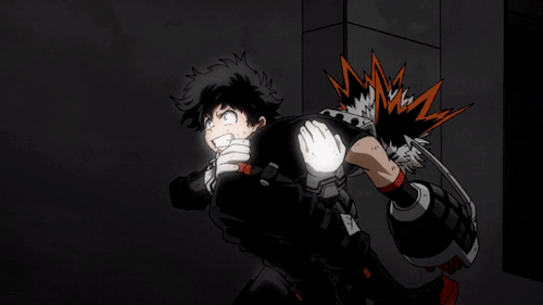 Bakugou’s Fierce Hold: Midoriya and Explosive Clash – My Hero Academia GIF