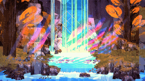 Download Video Game Totem Teller Waterfall Forest Vibrant Colors Gif