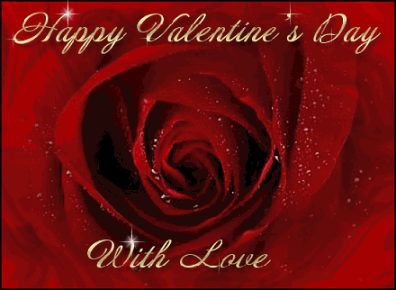 Animated glittering red rose with sparkling highlights and elegant Happy Valentine's Day With Love text, evoking a romantic holiday mood.